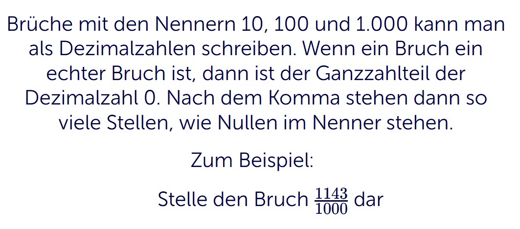 - Du verstehst den Zusammenhang zwischen Bruch und Dezimalzahl.