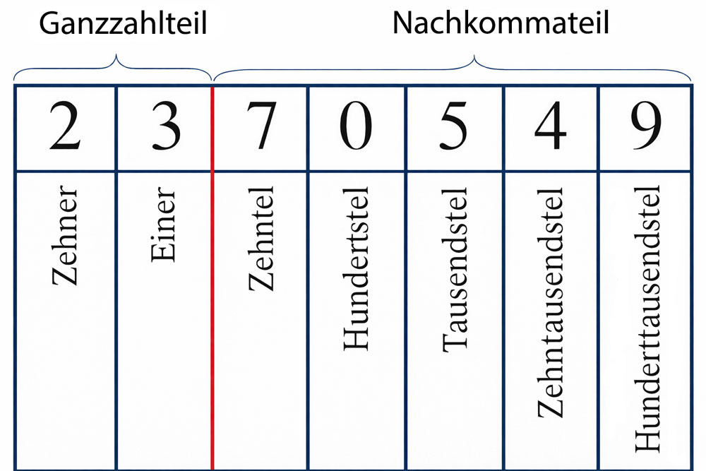 - Du lernst die Reihenfolge nach dem Komma: Zehntel, Hundertstel, Tausendstel.