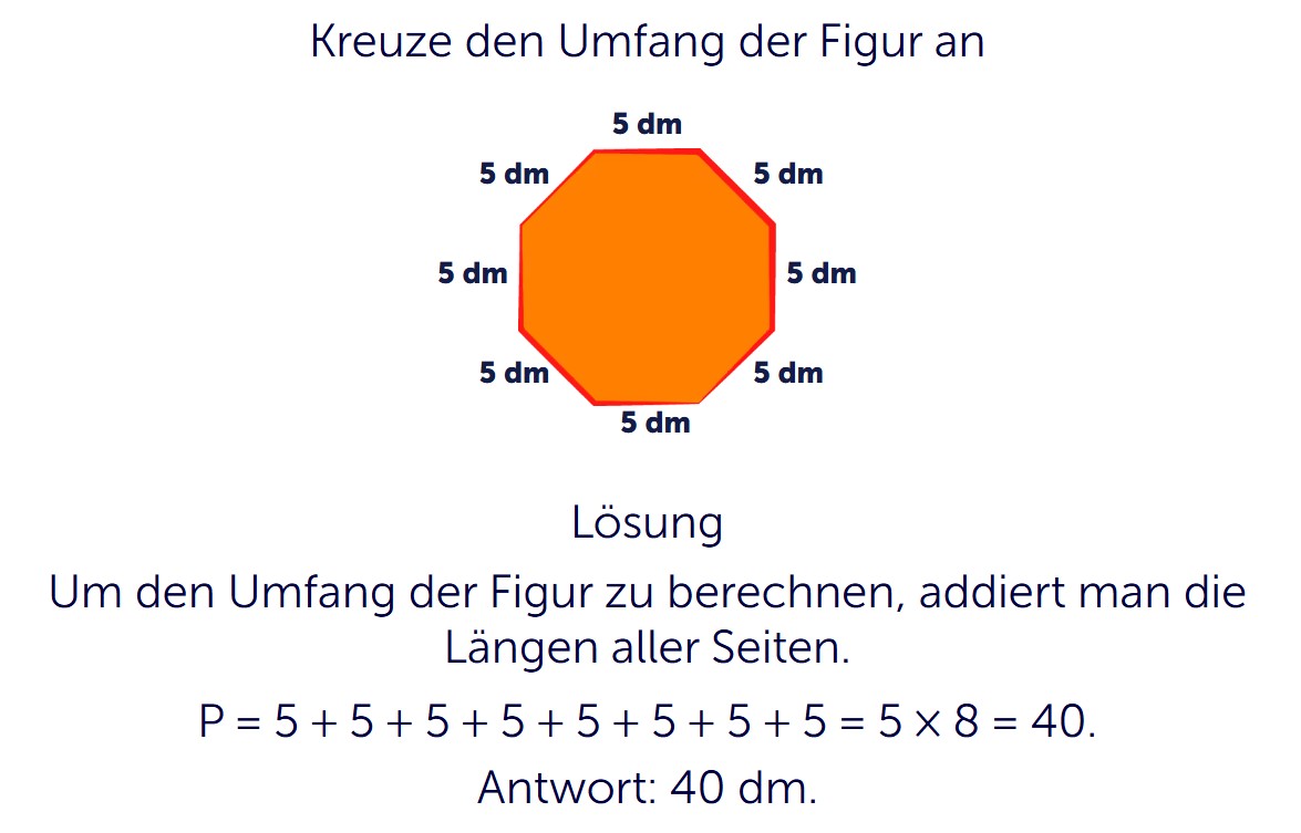 Hier übst du, den Umfang einer Figur zu berechnen. Der Umfang ist die gesamte Länge am Rand einer Form. Du gehst also einmal außen herum und addierst alle Seiten. In dieser Aufgabe ist besonders wichtig, dass die Seitenlängen in verschiedenen Einheiten angegeben sind. Genau das macht die Übung spannend und sehr nützlich für den Matheunterricht in der 5. Klasse.