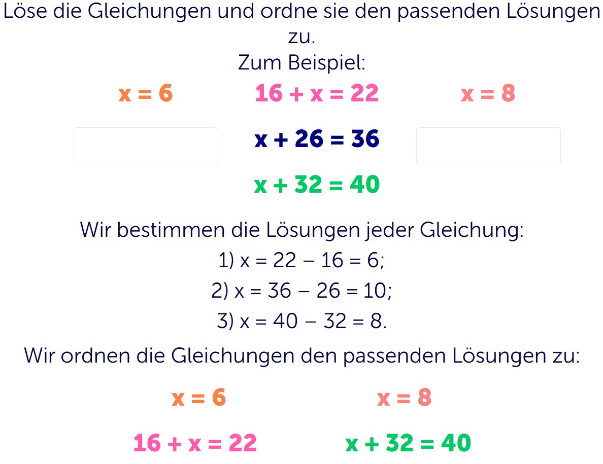 - Du lernst, Gleichungen und Lösungen richtig zu verbinden.
