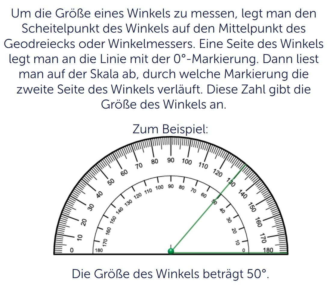 - du trainierst den Umgang mit Geodreieck und Winkelmesser